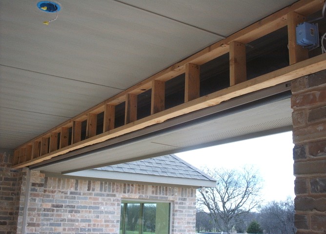 This task takes several hours depending on the number of screens and the complexity of installation. The purpose of the recessed track housing is to allow for the exterior material to be installed flush to the opening which will provide for the track to be recessed into the post. It is completed during the framing stage when headers/LVLs and load bearing posts are in place. The photo below shows an example of Phantom Screens recessed track housing mounted during the framing stage.